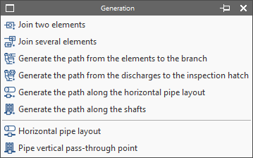 Génère les tuyauteries depuis les raccordements sélectionnés jusqu'à un élément de type regard, en fonction du nombre de connexions autorisées dans cet élément.