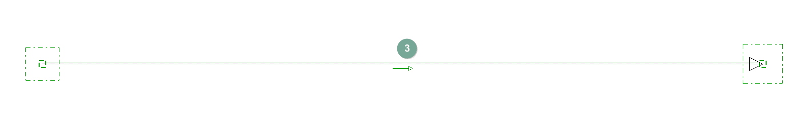 - Sélectionnez le tracé horizontal des tuyauteries avec le bouton gauche. La tuyauterie (3) est alors générée automatiquement entre les éléments en suivant le tracé sélectionné.
