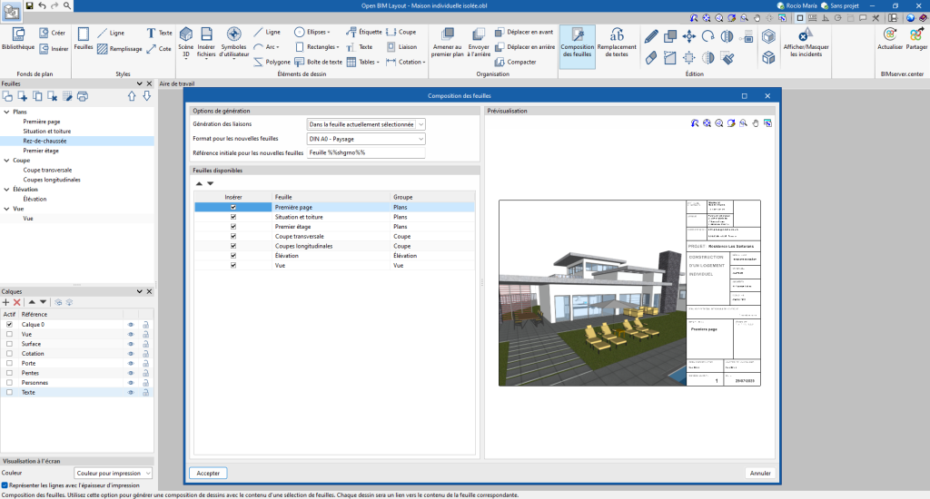 Cette option permet de générer automatiquement une composition de dessins à partir d'une sélection de feuilles.
