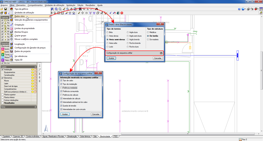 A partir da versão 2013, é possível configurar a informação incluída no esquema unifilar gerado pelo programa. Esta configuração tem efeito tanto no ambiente de trabalho como nos desenhos gerados e podem ser editados na janela de Configuração do esquema unifilar (menu Obra> Dados obra> opção Configuração do esquema unifilar).