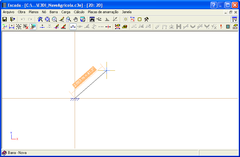 . Uma vez activada esta opção, que se encontra no menuBarra, gerar-se-ão nós nas intersecções de barras. Se estiver desactivada, as barras cruzar-se-ão sem gerar nenhuma vinculação entre elas, é útil para definir contraventamentos.