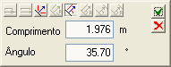 Se durante a introdução de uma barra estiver activada a opção Editar as cotas, o programa mostrará com fundo da cor seleccionada, o comprimento e o ângulo em relação ao ponto anterior quando for um ponto não definido. Ao premir o segundo ponto com o rato, mostra-se um diálogo no qual se pede a confirmação desses dados, ao mesmo tempo que permite a sua modificação.