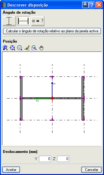 Definição do ângulo do perfil assim como a sua posição em relação ao eixo da barra.