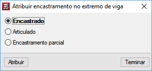 Na versão 2017.a do CYPECAD, é possível introduzir um coeficiente de encastramento parcial no extremo de uma viga de betão. Para isso, implementou-se a opção "Encastramento no extremo de vigas" (separador "Entrada de vigas"> menu "Vigas/Muros") que abre um diálogo que permite indicar qual o extremo da viga:
