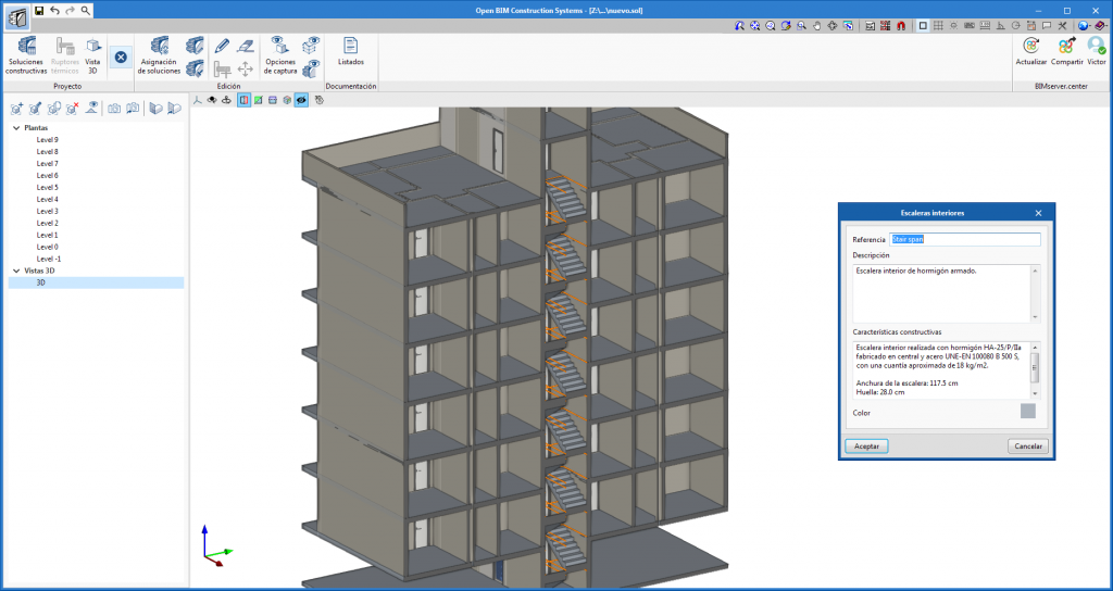 La descripción y características constructivas de estos sistemas se incluyen en los documentos generados para la memoria descriptiva y constructiva. Además, si se comparte el modelo en el proyecto de BIMserver.center, la aplicación "CYPE Memorias CTE" puede incluir esta nueva información en la memoria del proyecto.