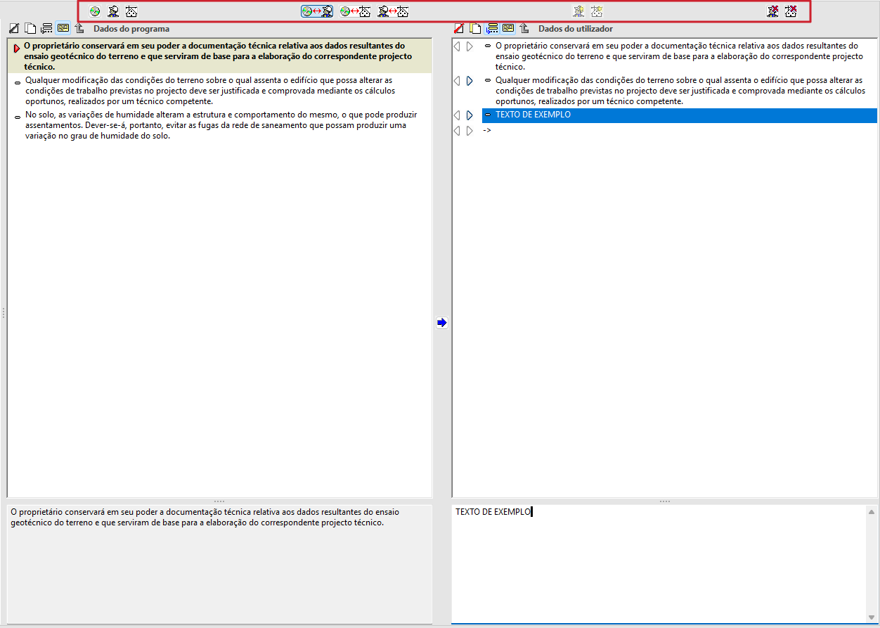 Esta base de dados pode ser ampliada e configurada pelo utilizador. Permite a edição de textos com as opções habituais de processamento de texto (copiar, colar, recuos, etc.).