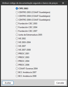 - A seleção automática pode ser efetuada com os BC3 que contenham partidas do Gerador de preços e com os BC3 gerados pelos Pré-dimensionadores de medições e orçamentos e pelos Geradores de orçamentos do CYPE.