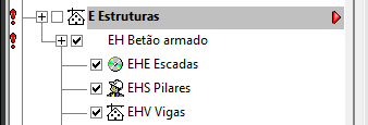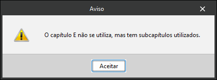 Ao clicar sobre esta marca, é indicada a existência de algum problema. Aparece quando um capítulo ou subcapítulo não está selecionado, mas contém itens utilizados.
