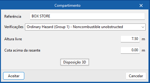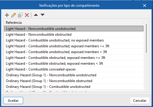 - Sprinklers ativos (em "Hipóteses de cálculo", "Atribuir").