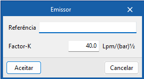 - Sprinklers (em "Consumos", "Sprinklers" [introdução manual]; desde "Distribuição", "Geração / Ramal / Coletor com ramais / Rede malhada" [introdução assistida]).
