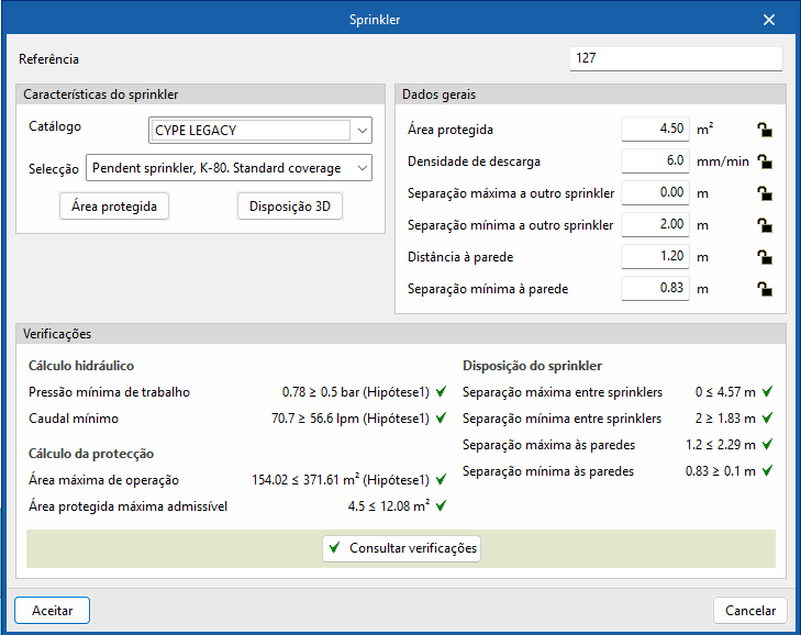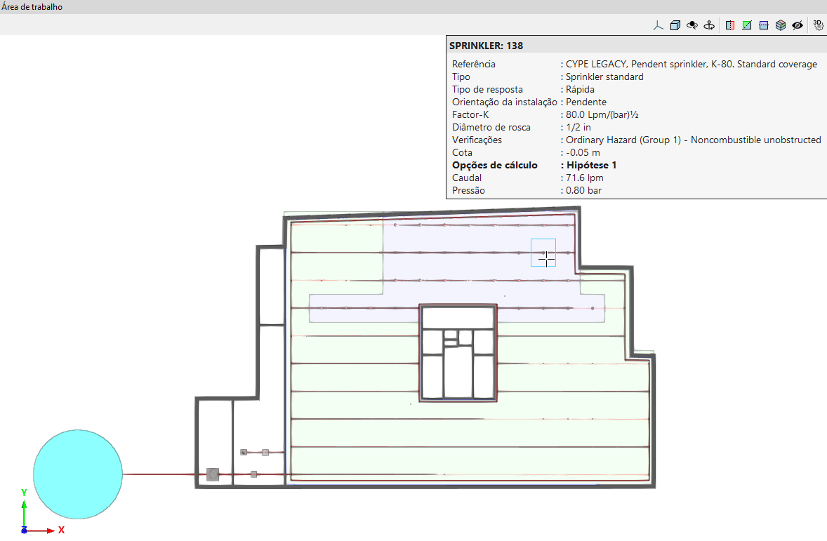 - Sprinklers ativos (desde "Hipóteses de cálculo", "Atribuir").
