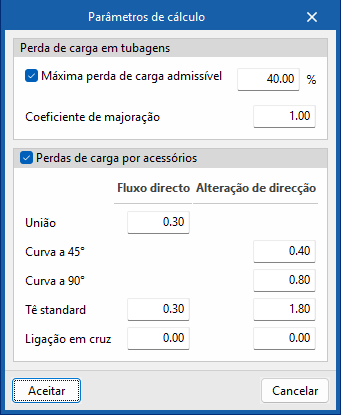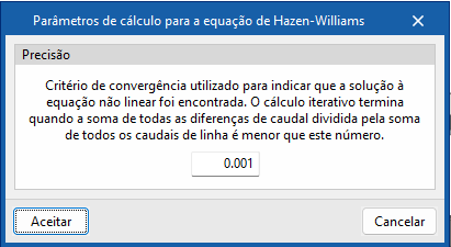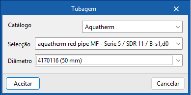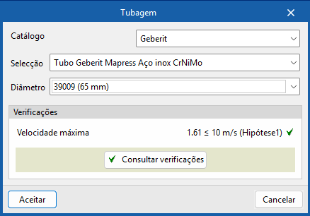 Permite realizar um dimensionamento da rede de acordo com a hipótese indicada, selecionando automaticamente o diâmetro das tubagens.