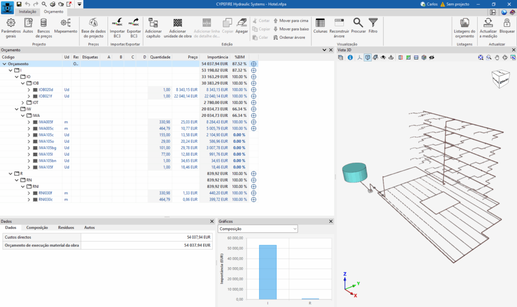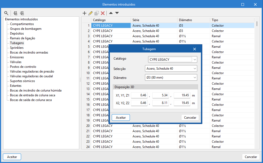 - Definição dos elementos do modelo e das suas características através da introdução livre no CYPEFIRE Hydraulic Systems.