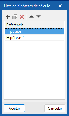 - Definição de hipóteses de cálculo (em "Hipóteses de cálculo", "Lista").
