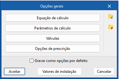 - Cálculo ou dimensionamento da instalação, consulta de resultados no ecrã e nas listagens de resultados (grupo "Cálculo").