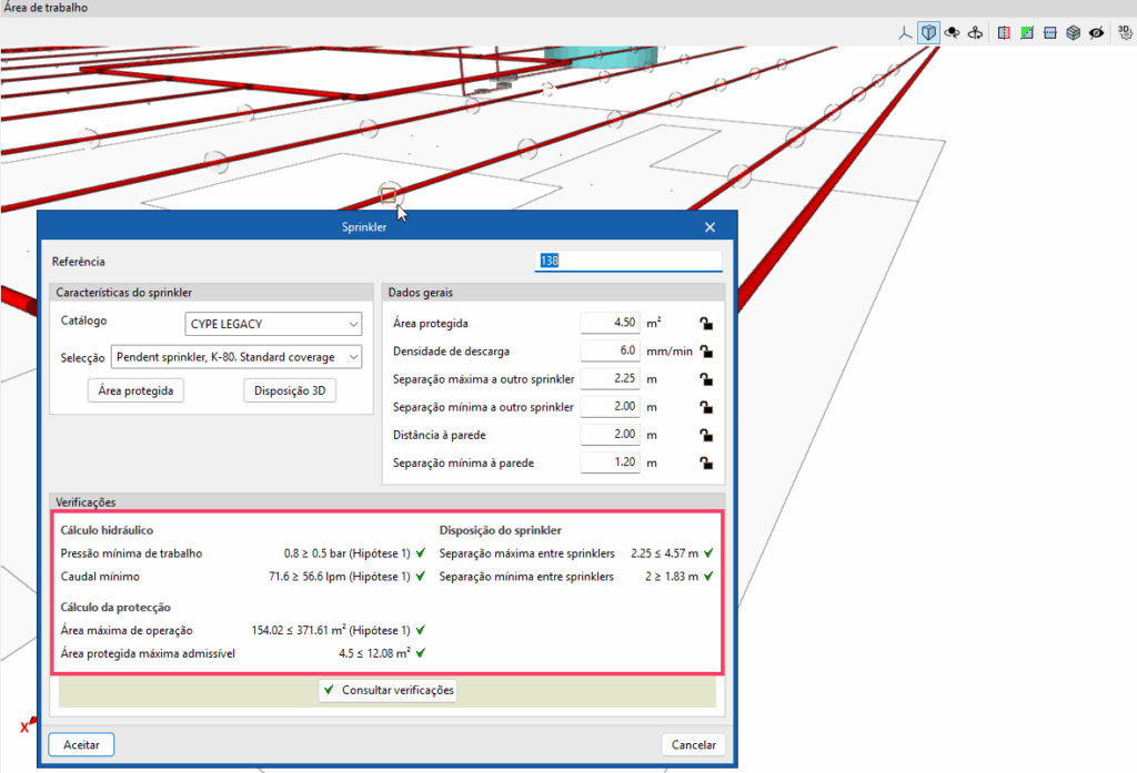 - Importação de requisitos de instalação de sprinklers nos compartimentos a partir de modelos calculados no CYPEFIRE.