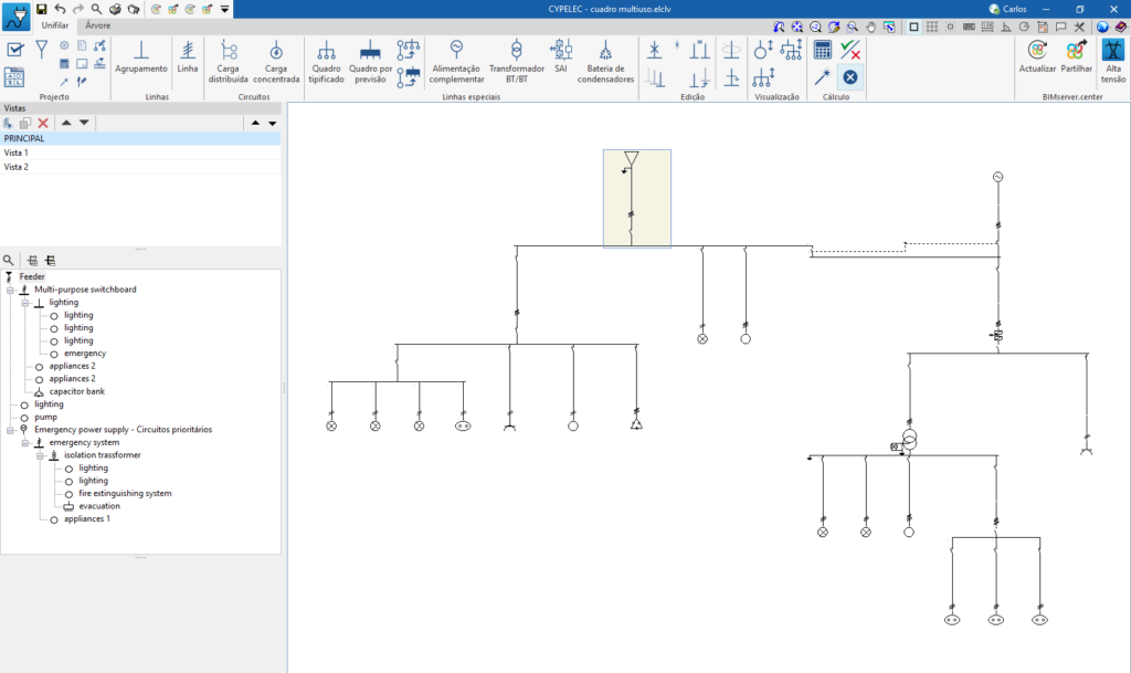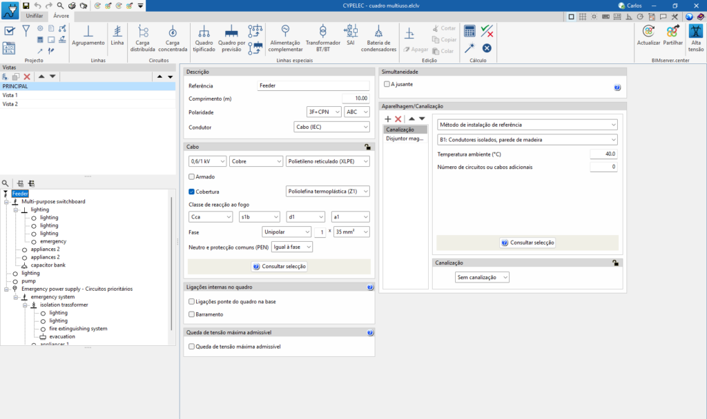 O CYPELEC é um programa para o cálculo de instalações elétricas de baixa tensão que permite conceber os esquemas unifilares da instalação e configurar as características dos elementos que a compõem.