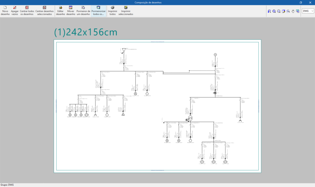 Desenhos do esquema unifilar em formato DWG, DXF ou PDF