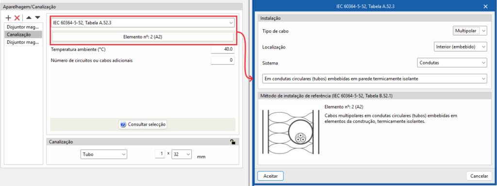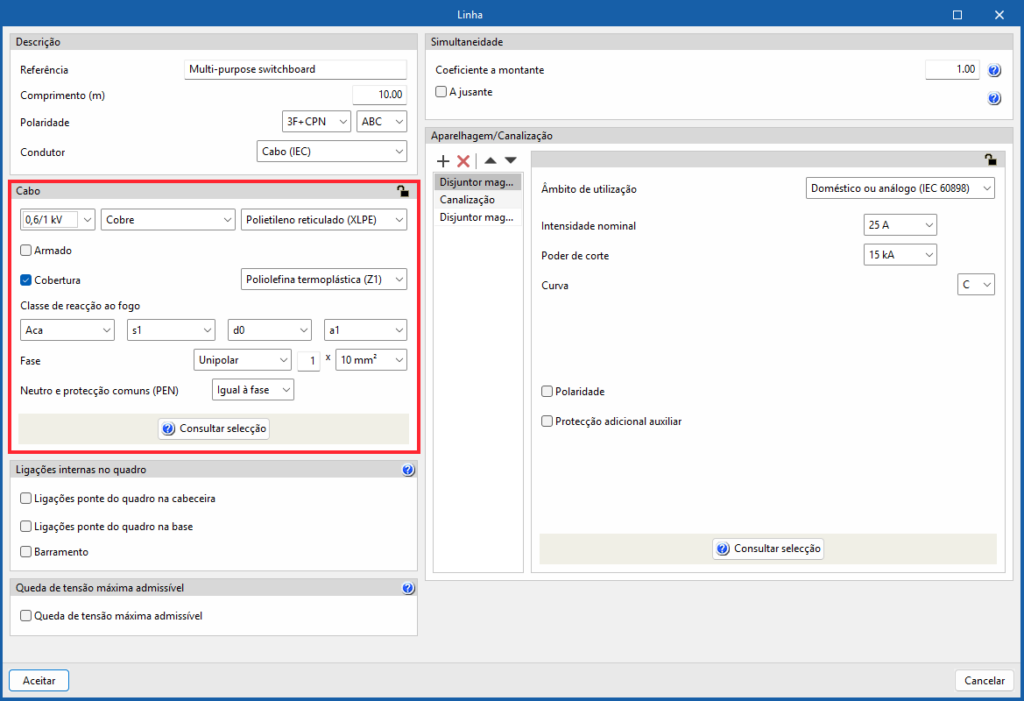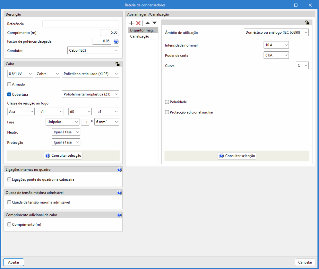 Permite realizar o cálculo de instalações elétricas de baixa tensão de acordo com as normas internacionais IEC. Os cabos e os métodos de instalação são designados de acordo com as normas IEC e ANSI.