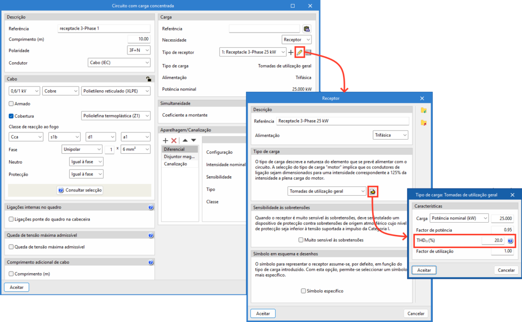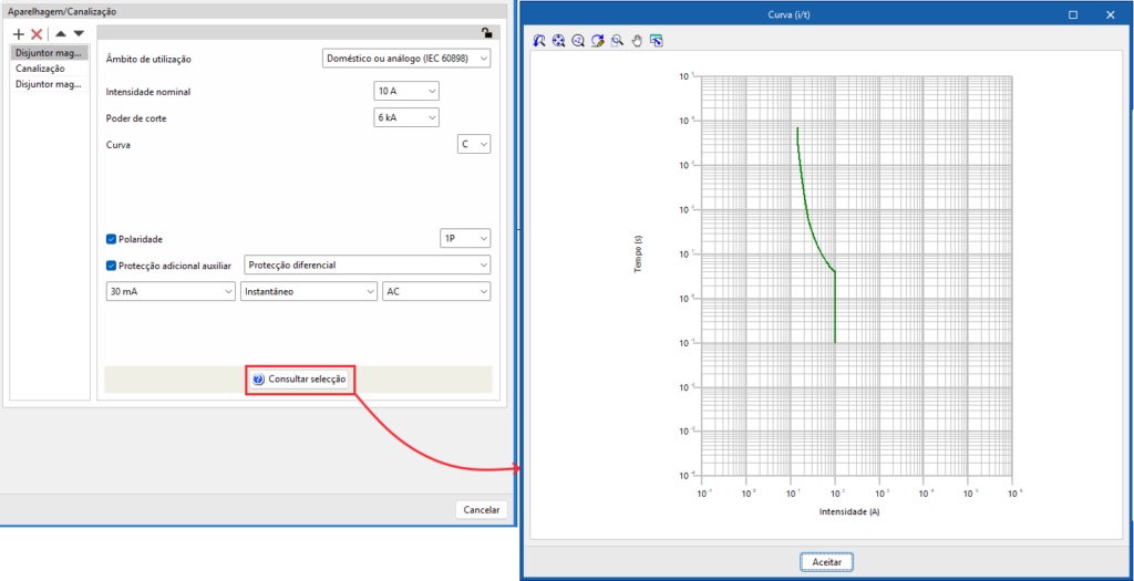 - Intensidades (Intensidade calculada, Intensidade admissível)