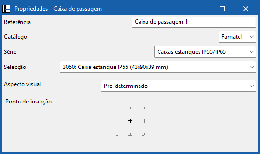 Permite introduzir uma caixa de passagem (ou caixa de derivação) a partir de um catálogo de fabricante e definir as suas preferências de visualização.