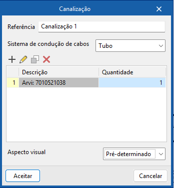 Permite introduzir uma canalização do tipo caminho de cabos, calha ou tubo a partir de um catálogo de fabricante, para além de configurar as suas preferências de visualização.