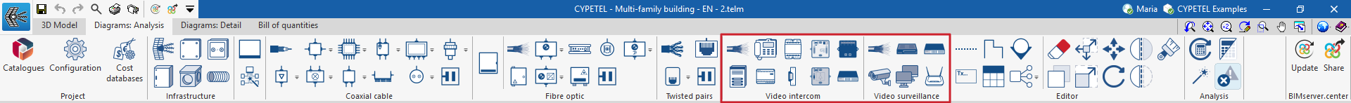 - (Opcional) Introdução dos elementos de videoporteiro e videovigilância no modelo BIM (separador "Modelo 3D", grupos "Videoporteiro" e "Videovigilância").
