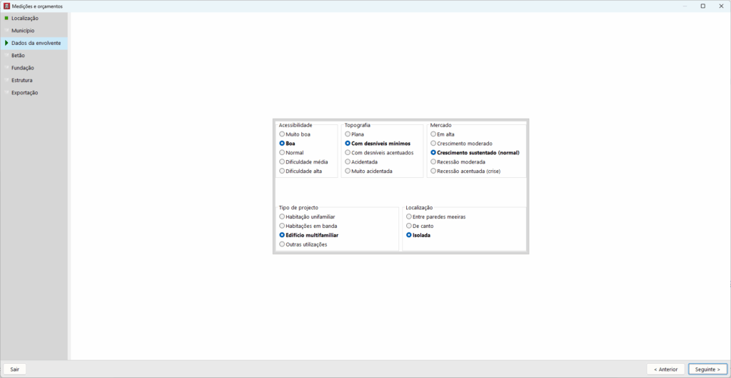Após introduzir estes dados, no mesmo assistente é possível definir as características do orçamento que se vai gerar: