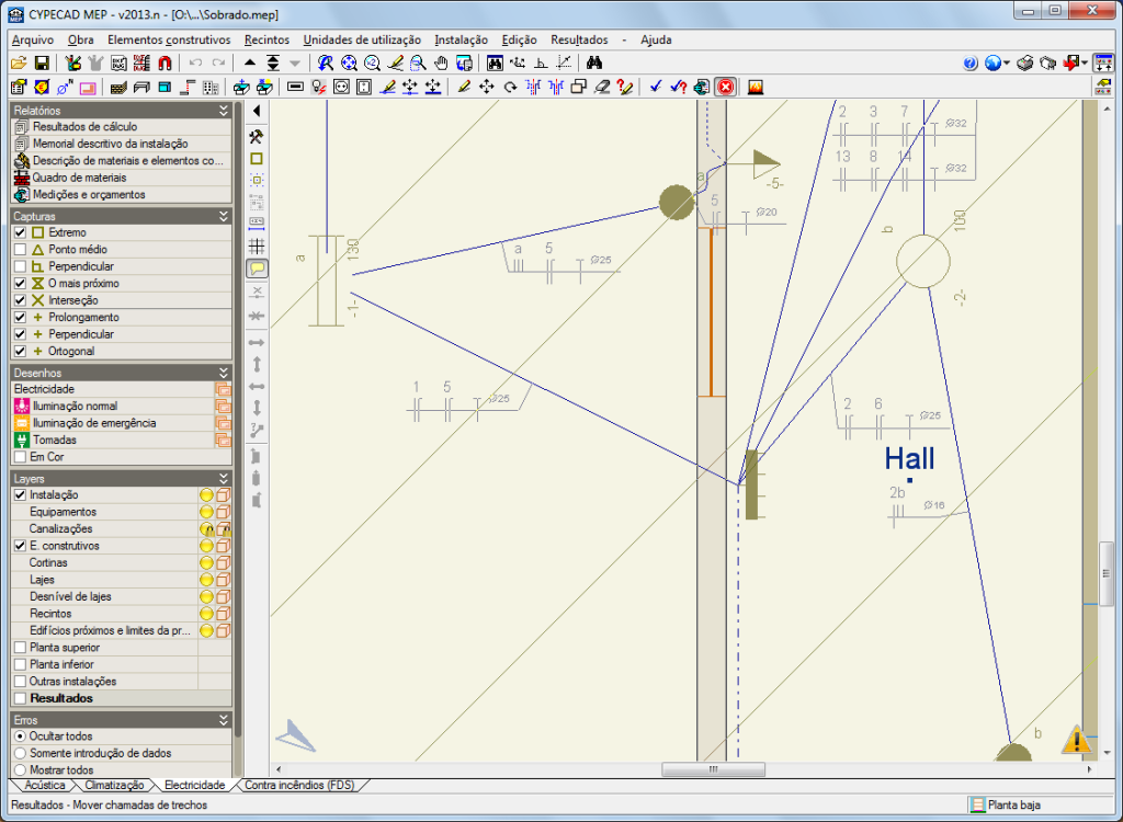 Foi implementada a opção Editar curvatura (menu Instalação) para dar curvatura à representação das canalizações em planta. Esta opção permite editar uma canalização seleccionando-a com o botão esquerdo do rato. Seguidamente, com o movimento do cursor pode-se dar à canalização mais ou menos curvatura.