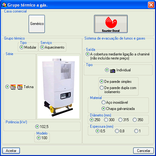 - Possibilidade de introduzir caldeiras ou grupos térmicos a gás, a partir de um determinado fabricante.