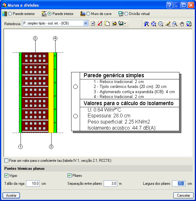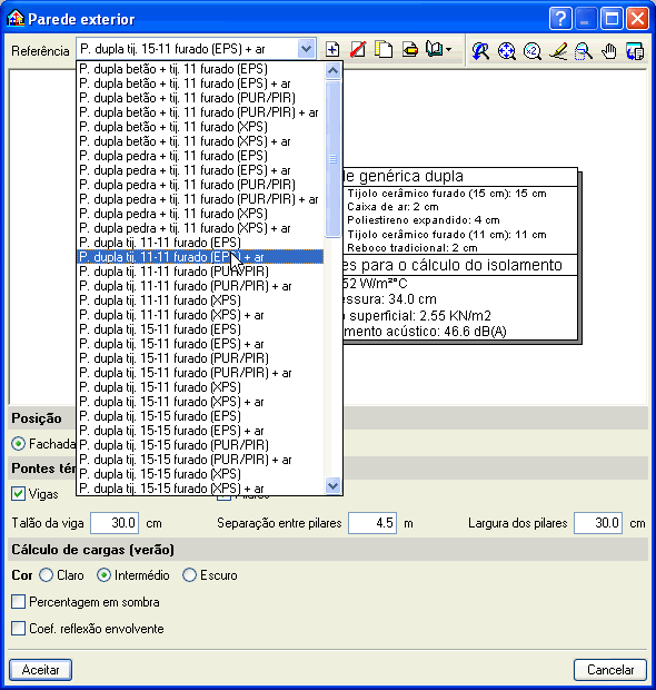 - Melhoria geral no cálculo de pontes térmicas lineares. Consideração da espessura de lajes para calculo do parâmetro