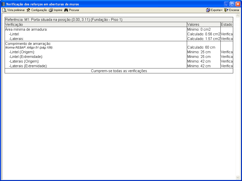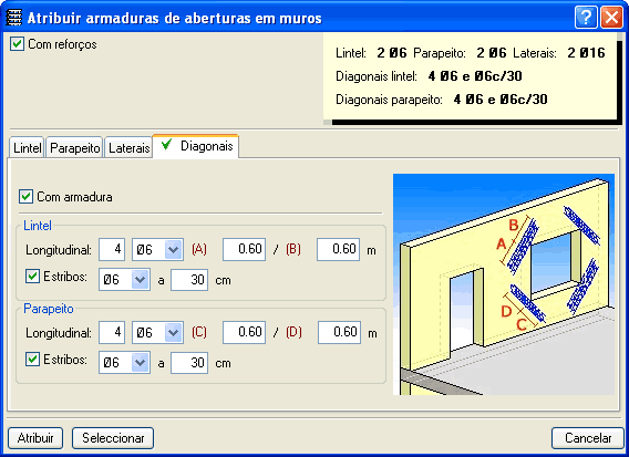 Cálculo de reforços em aberturas de muros de betão