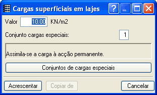 Introdução directa de cargas superficiais nas lajes