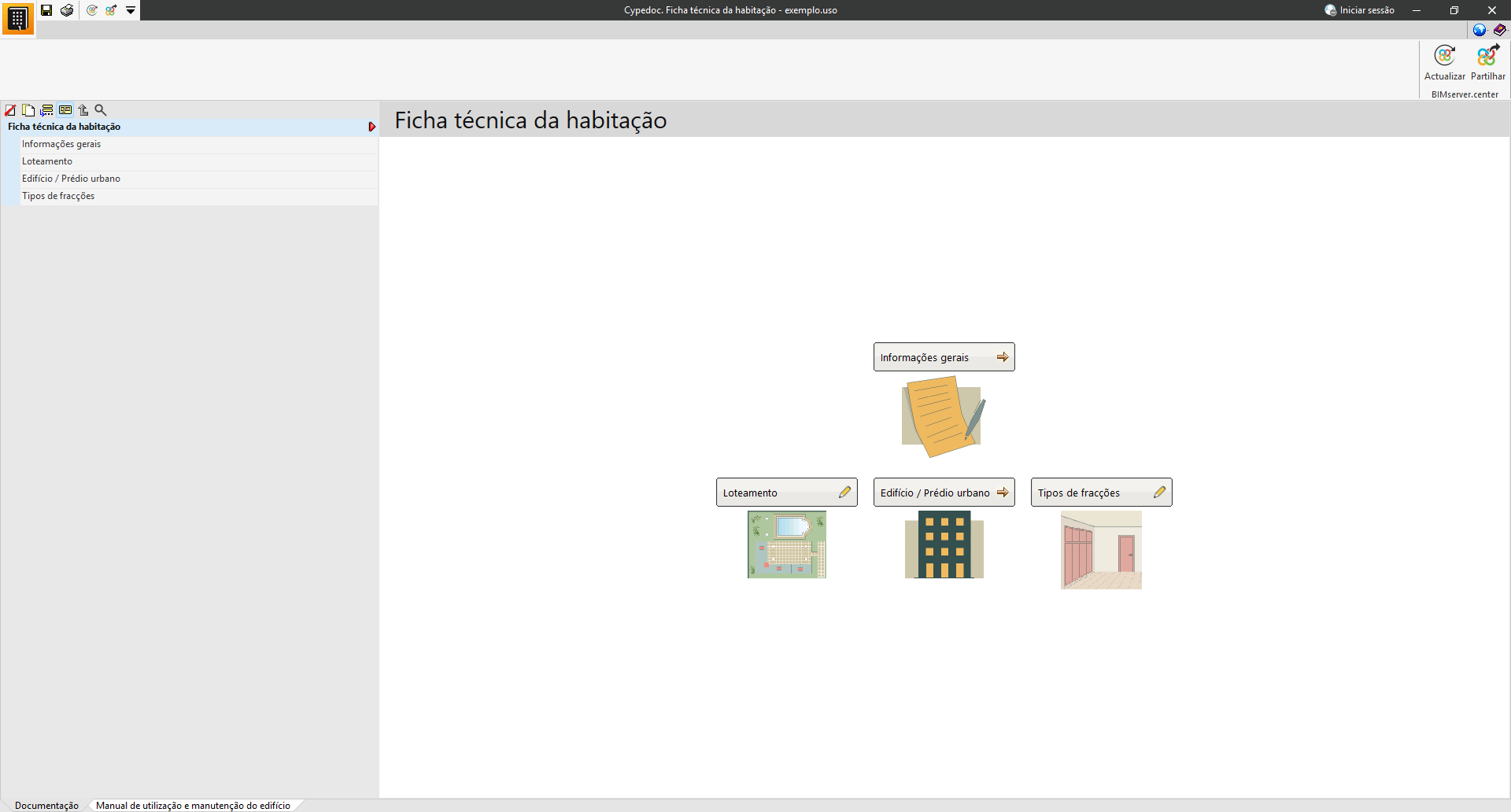 Entre a documentação da Ficha técnica da habitação encontra-se o Manual de utilização e manutenção do edifício. A seleção das instruções para esta secção pode ser efetuada de várias formas: