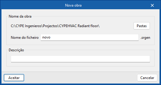 - Criação de obra nova (desde "Arquivo", "Novo").