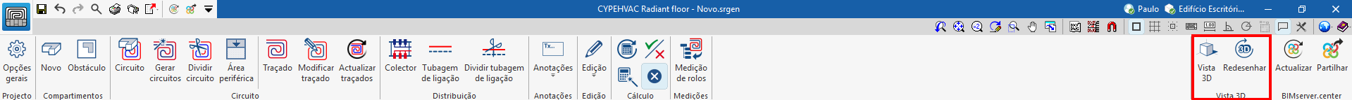 No bloco "Vista 3D" da barra de ferramentas principal encontram-se as opções para obter a visualização 3D da instalação introduzida: