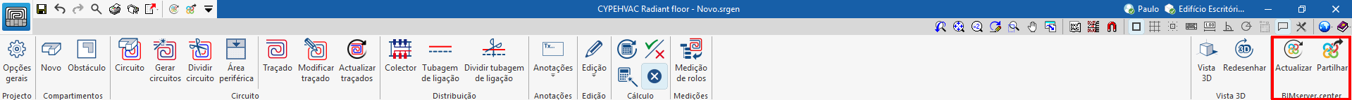 Se vincular a obra do CYPEHVAC Radiant Floor a um projeto BIM da plataforma BIMserver.center, é possível levar a cabo as seguintes ações: