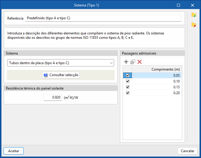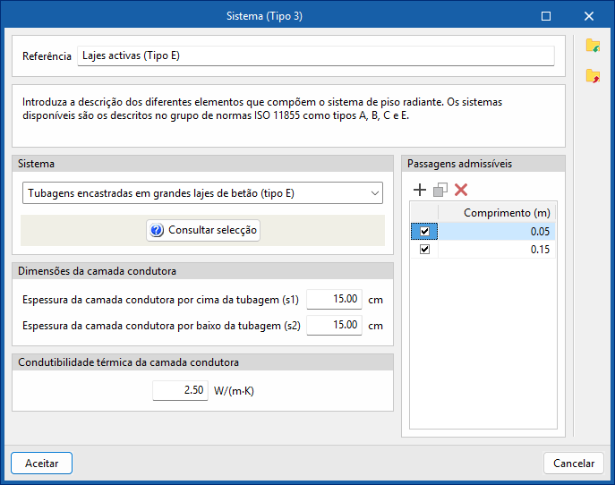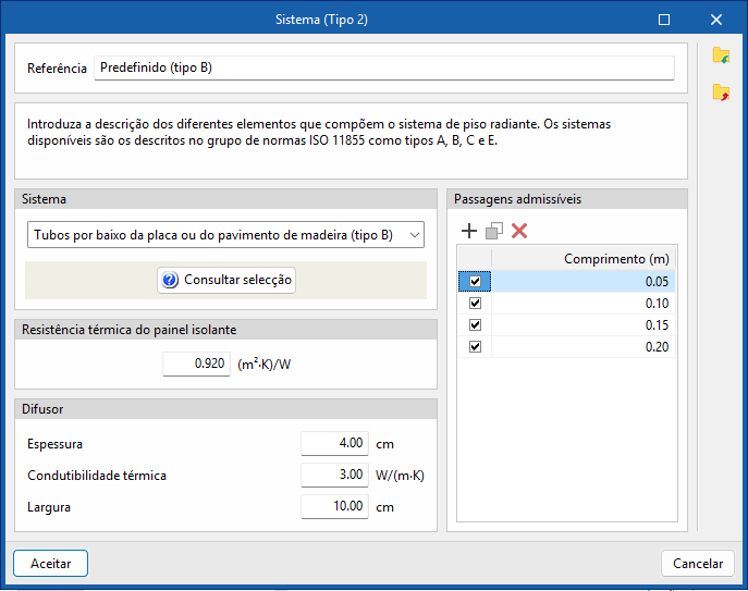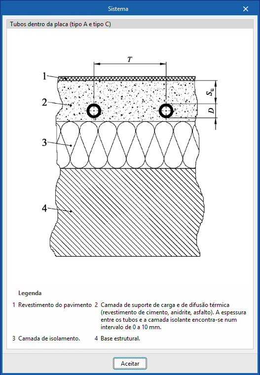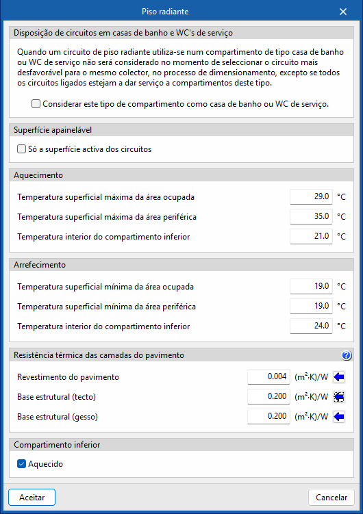 As instalações de piso radiante podem ser definidas e calculadas no programa através da seguinte sequência de introdução e saída de dados: