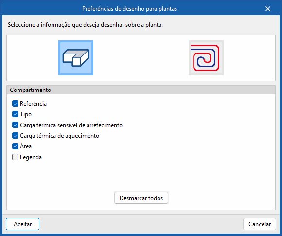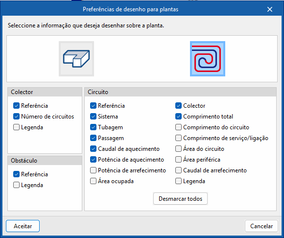 Permite ativar ou desativar a informação que se deseja desenhar nos desenhos das plantas: