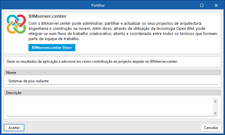 - Exportação para o BIMserver.center (desde "BIMserver.center", "Partilhar").