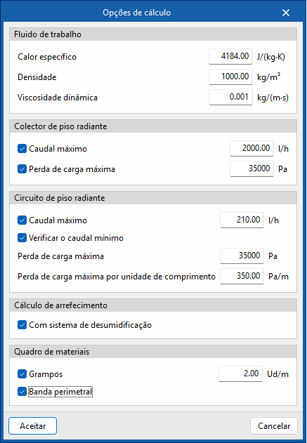 Opções disponíveis no CYPEHVAC Radiant Floor