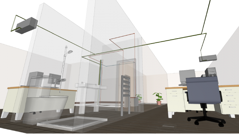 Ao exportar um projeto para a plataforma BIMserver.center, é exportado automaticamente um modelo 3D em formato GLTF para a integração do modelo de instalação no projeto Open BIM, permitindo a sua visualização: