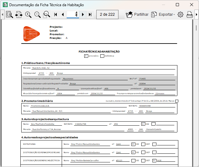 Trata-se de um conjunto de documentos que inclui, entre outros, o Manual de utilização e manutenção do edifício. A Ficha técnica da habitação deve ser atualizada ao longo da vida útil do edifício, registando as eventuais incidências que possam surgir, bem como as inspeções e reparações realizadas no edifício.