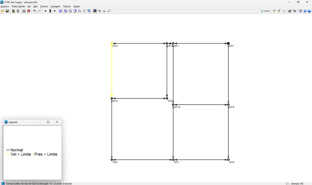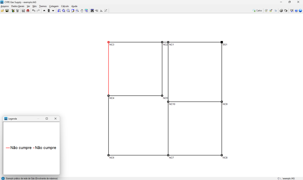 Para saber o motivo de um nó ou um tramo não cumprir, deve ativar-se uma combinação e examinar a "Legenda" de cores que aparece numa janela independente. O código de cores indica os motivos pelos quais os nós ou tramos da instalação não estão em conformidade.