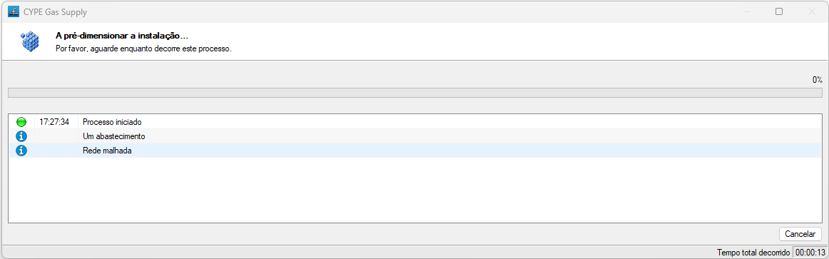 Inicia um processo de pré-dimensionamento automático da instalação. Durante o pré-dimensionamento, o programa procurará otimizar e selecionar o diâmetro mínimo que cumpra todas as restrições de velocidade e pressão, mantendo o material selecionado.