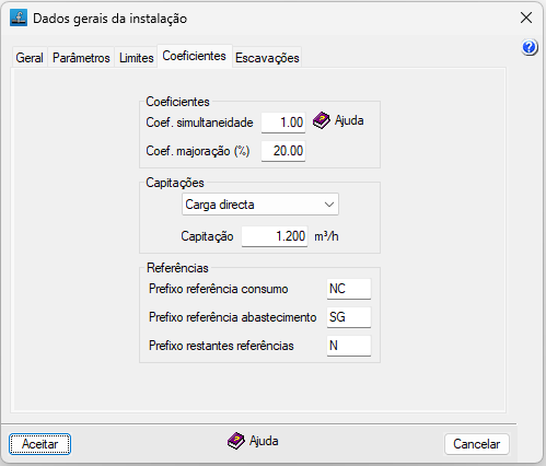 Permite definir se as cargas dos nós de consumo são definidas por defeito de forma direta ou por capitação.