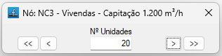 Ao clicar na opção, abre-se uma pequena janela no canto superior esquerdo do ecrã. Ao mesmo tempo, o nó com a referência mais baixa ficará destacado a amarelo, e será possível rever e/ou alterar os dados do nó (como o número de unidades, o caudal ou a potência calorífica). É possível percorrer todos os nós utilizando os botões correspondentes.