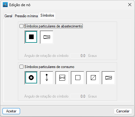 Permite definir símbolos particulares para o nó que está a ser editado.- Símbolos particulares de abastecimento (opcional)