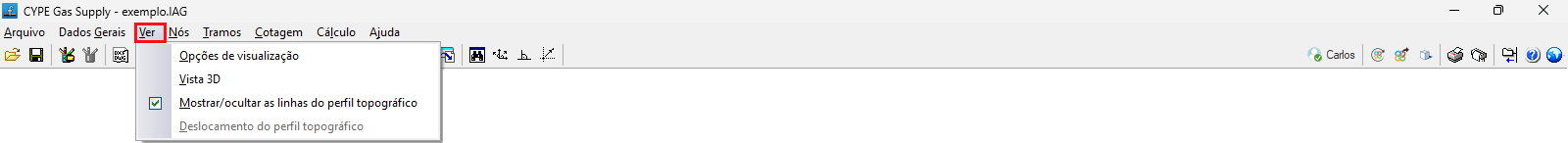 Mostrar/ocultar as linhas do perfil topográfico