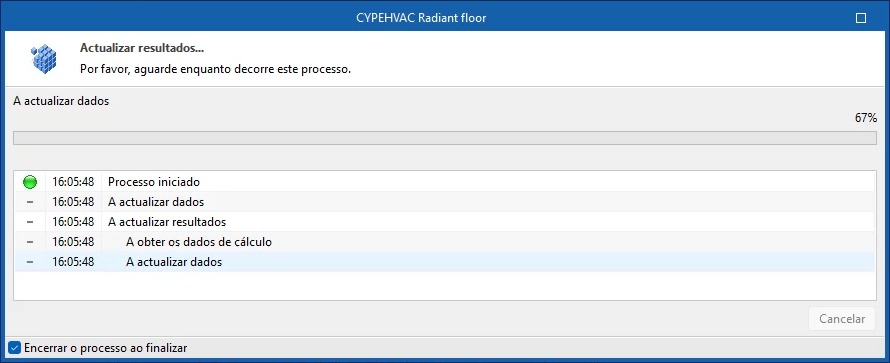 Se tiver feito alguma alteração nos elementos da instalação, deve utilizar a opção "Atualizar resultados" para que o programa atualize os resultados apresentados.